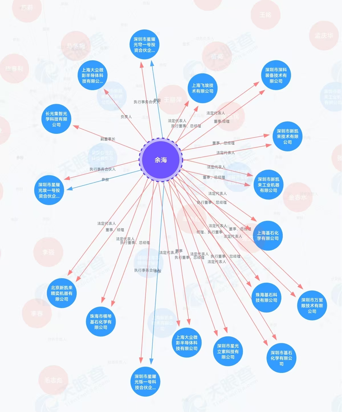 此外,他同时在深圳市新凯来技术有限公司、长光集智光学科技有限公司、深圳市新凯来工业机器有限公司、深圳市星光立索科技有限公司、深圳市万里眼技术有限公司等16家企业中担任法定代表人。